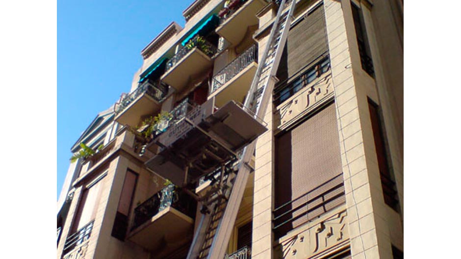 Grúa montamuebles. Elevadores por fachada para mudanzas: todo tipo de materiales y enseres.